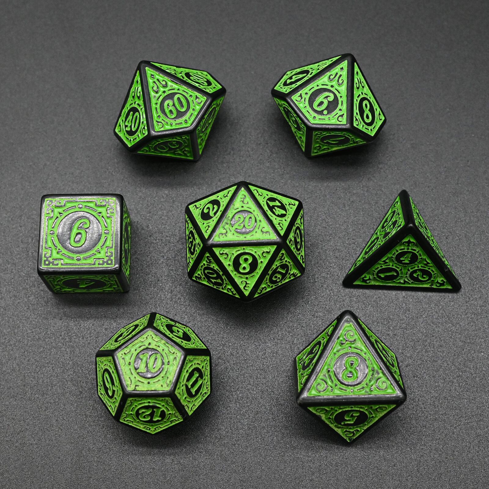 Ett set med 7 tärningar, avsedda för rollspel!
