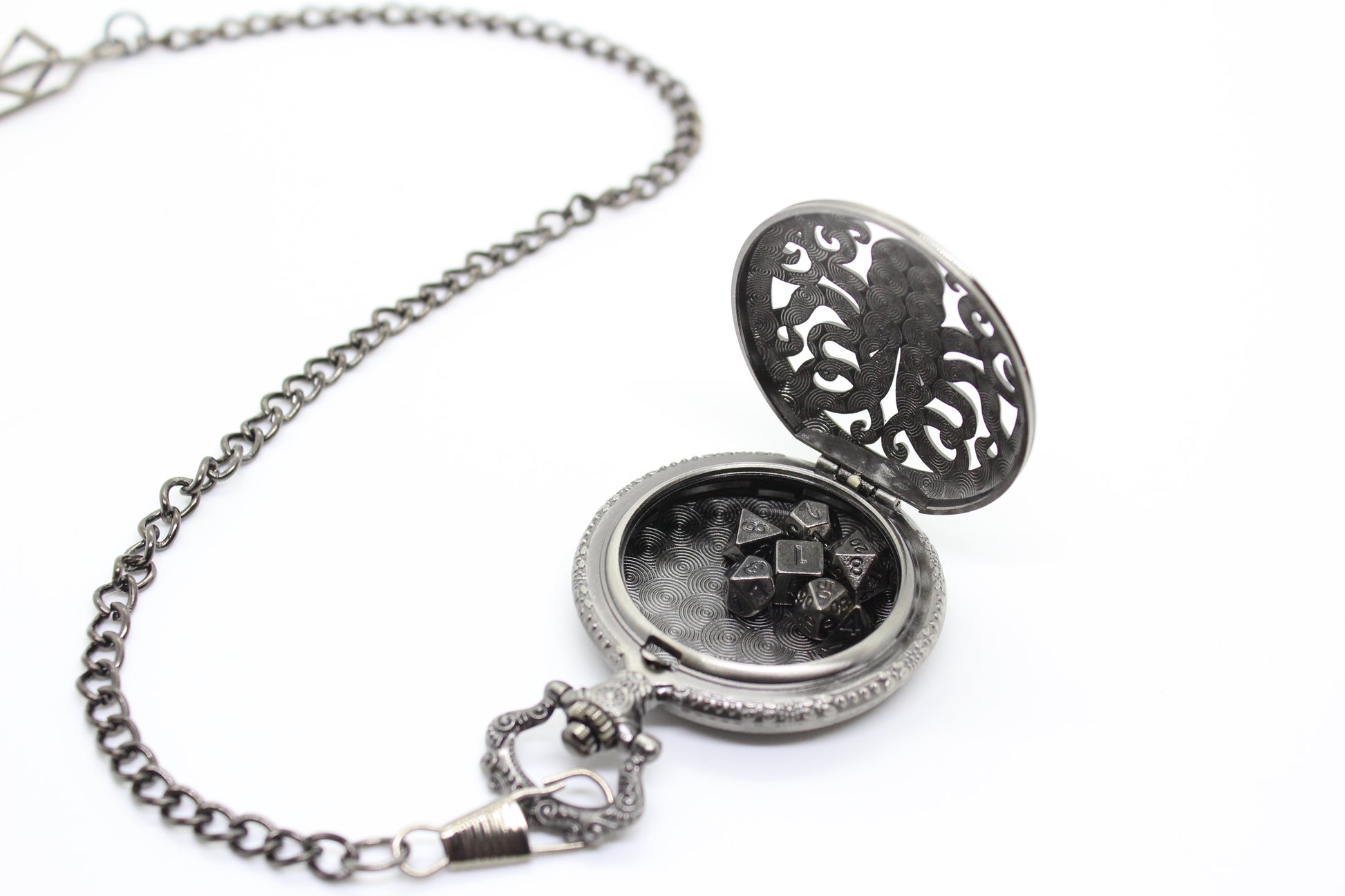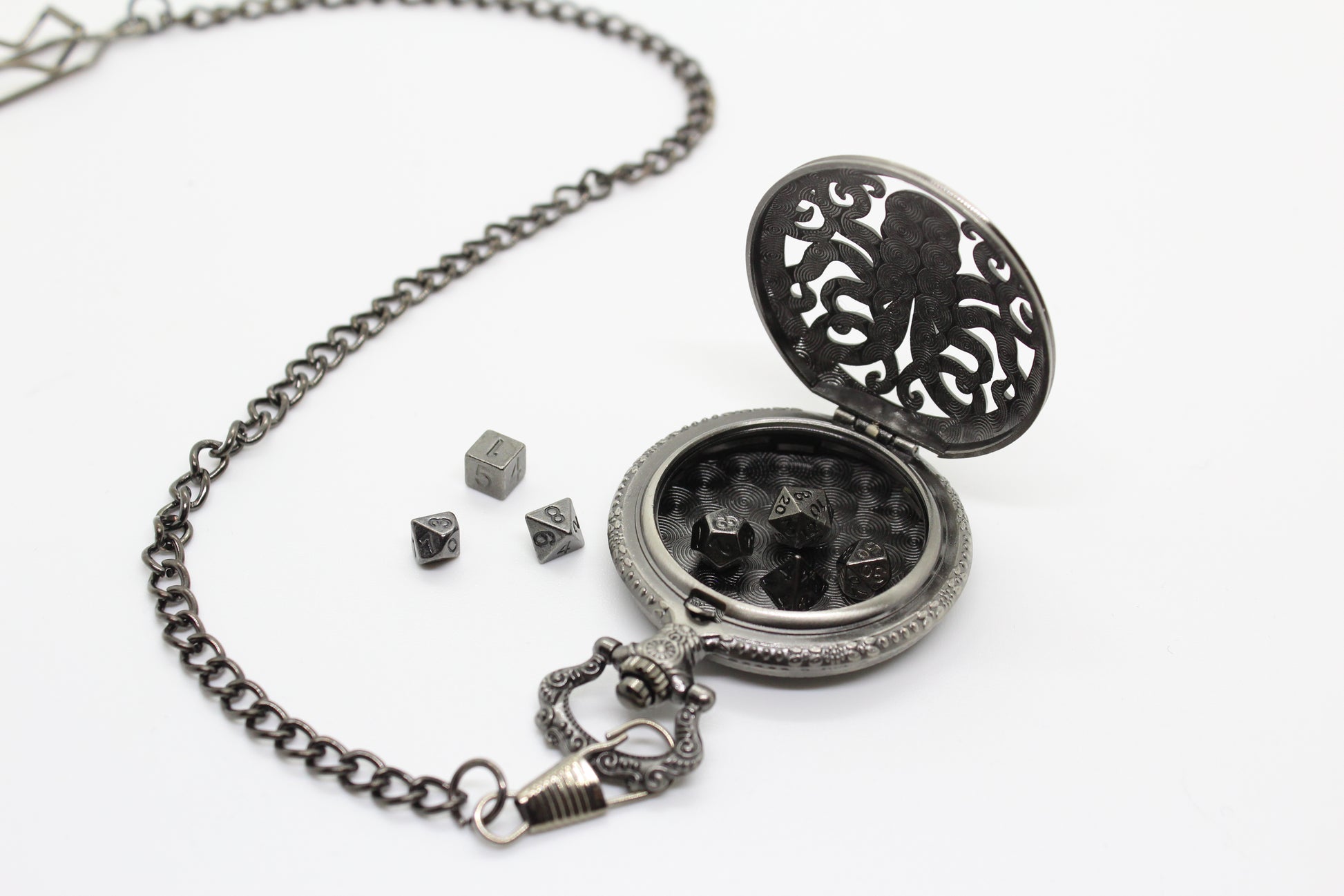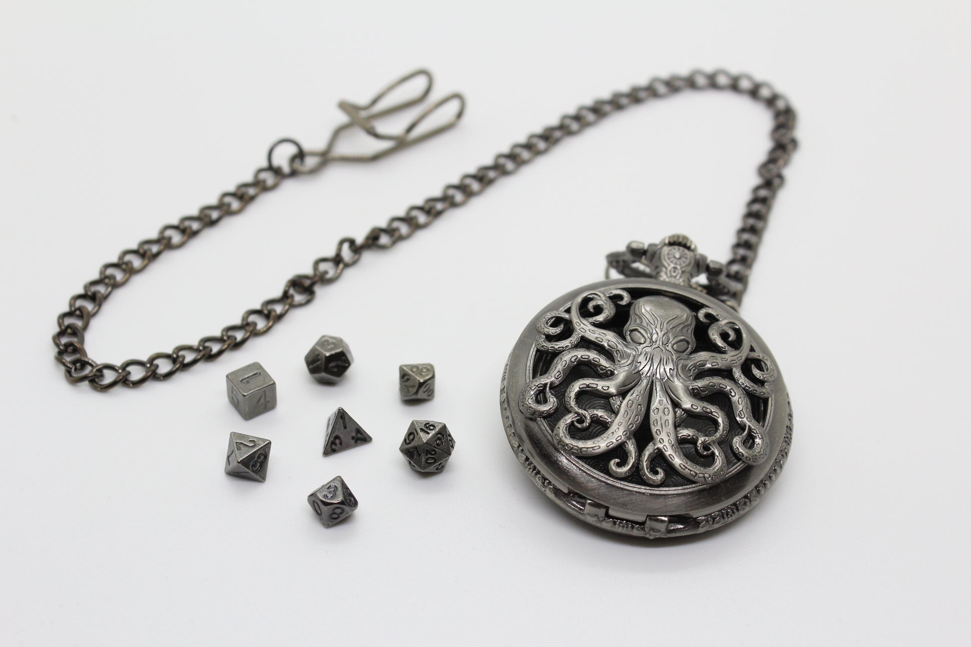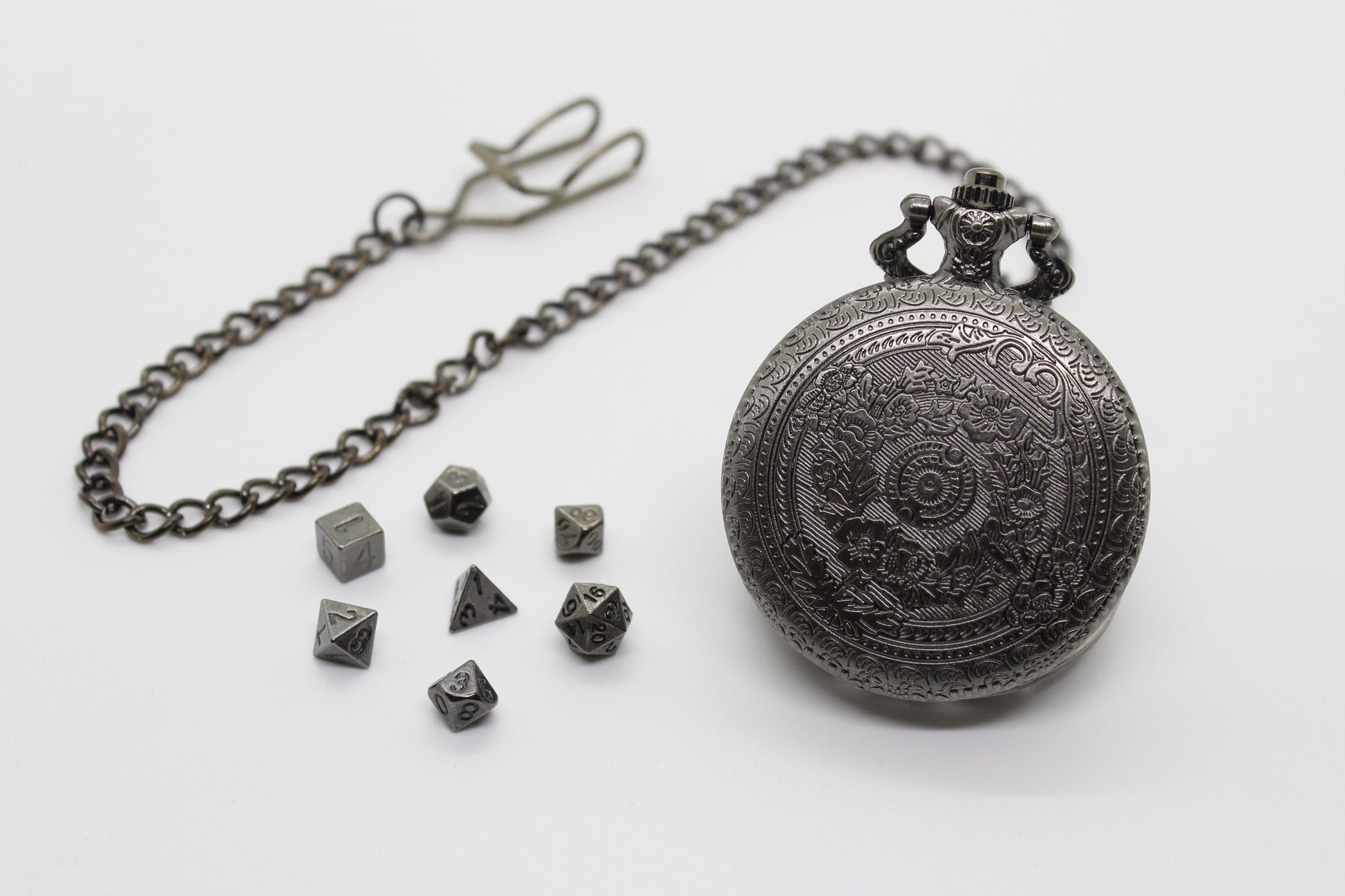 Varje fickur innehåller D4, D6, D8, D10, D10 (%) D12, D20.